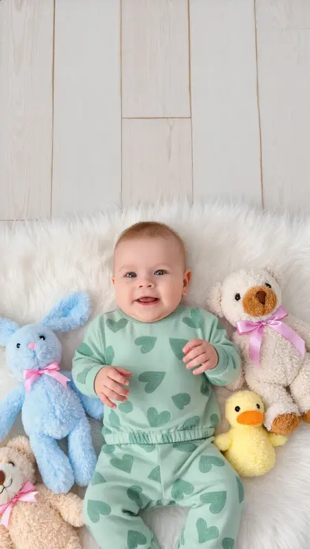 Fred and Flo baby set with teddy fluffy bears print.